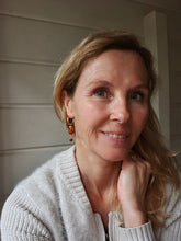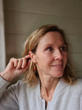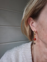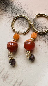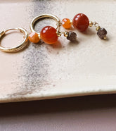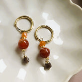 - Oorbellen Warm Fire, met edelstenen oranje carneool en calciet, bruine toermalijn
