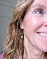 Oorbellen Green Flavours, met groene hangers die een beetje stoer zijn, omdat de prehniet steentjes natuurlijk zijn gevormd. De bovenste edelsteentjes chrysocolla zijn facet geslepen en glanzen fijntjes. De prehniet kristal is halfdoorzichtig en vangt prachtig het licht! Geen steen is ooit hetzelfde, dus elk paar is weer net anders. De oorbellen worden verpakt in een bewaaretui, dat je makkelijk mee kunt nemen.