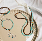 Set Kettingen Amelie, tijgeroog, chrysocolla en agaat