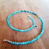 - De set Amelie van twee delicate kettinkjes met gouden tijgeroog, magnesiet, agaat en chrysocolla edelsteentjes