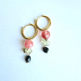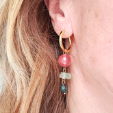 - Oorbellen Tender Feelings met watermeloen toermalijn, agaat en prehniet edelstenen in roze en gevlamd groene tinten