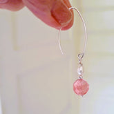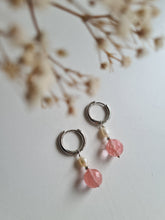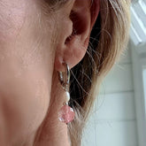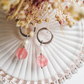 - Oorbellen Tender Love met watermeloen toermalijn en zoetwater parel in roze en wit