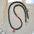 • De ketting Danielle, met zoisiet, agaat en carneool edelsteentjes in donkergroen en oranjerood