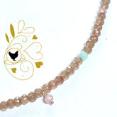 Kettinkje Balance, voor eindeloze liefde, balans en levensvreugde! Bruine agaat edelsteentjes met toermalijn, en een roze hangertje van rozekwarts. Het is het een subtiel kettinkje met fijne kleurdetails. De facet agaat steentjes hebben een zachte glans, waar de ronde amazoniet, lichtroze rozekwarts en toermalijn leuk bij afsteken. Een paar zonnesteen edelsteentjes maken het kettinkje een beetje zonnig. Met een klein sterling zilveren karabijnslotje. Het kettinkje wordt verpakt in een bewaaretui, dat je makkelijk mee kunt nemen, en je ketting goed beschermd.