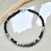 - Enkelbandje Darkness met zebra jaspis, agaat en onyx edelstenen in zwarte en grijze tinten