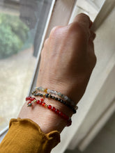 Dit fijne Jacky Moments-armbandje is gemaakt met edelmetaal en edelsteentjes, een klein bedeltje en geregen op elastiek. Heel fijntjes, met een bijzondere betekenis.