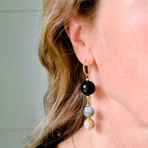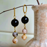 - Oorbellen Infinite Glow, met glanzende ronde edelstenen obsidiaan en agaat, in basiskleuren zwart, wit, beige en grijs
