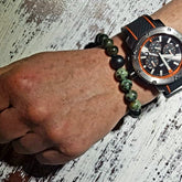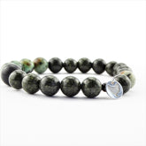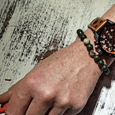 • De armband Hidden Forest, met donkergroen zoisiet en lichtgroen met bruin gevlekt afrikaans turquoise edelstenen