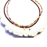 - De kettingen set Jennah, met donkerrood granaat en veelkleurig toermalijn