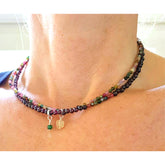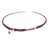 Jennah is een opvallende kettingen set met veelkleurig toermalijn en donkerrood granaat. Donkerrode granaat edelsteentjes zijn al eeuwen favoriet bij alle vrouwen. De ronde granaatjes hebben een zachte glans, waar de toermalijn leuk bij afsteekt.