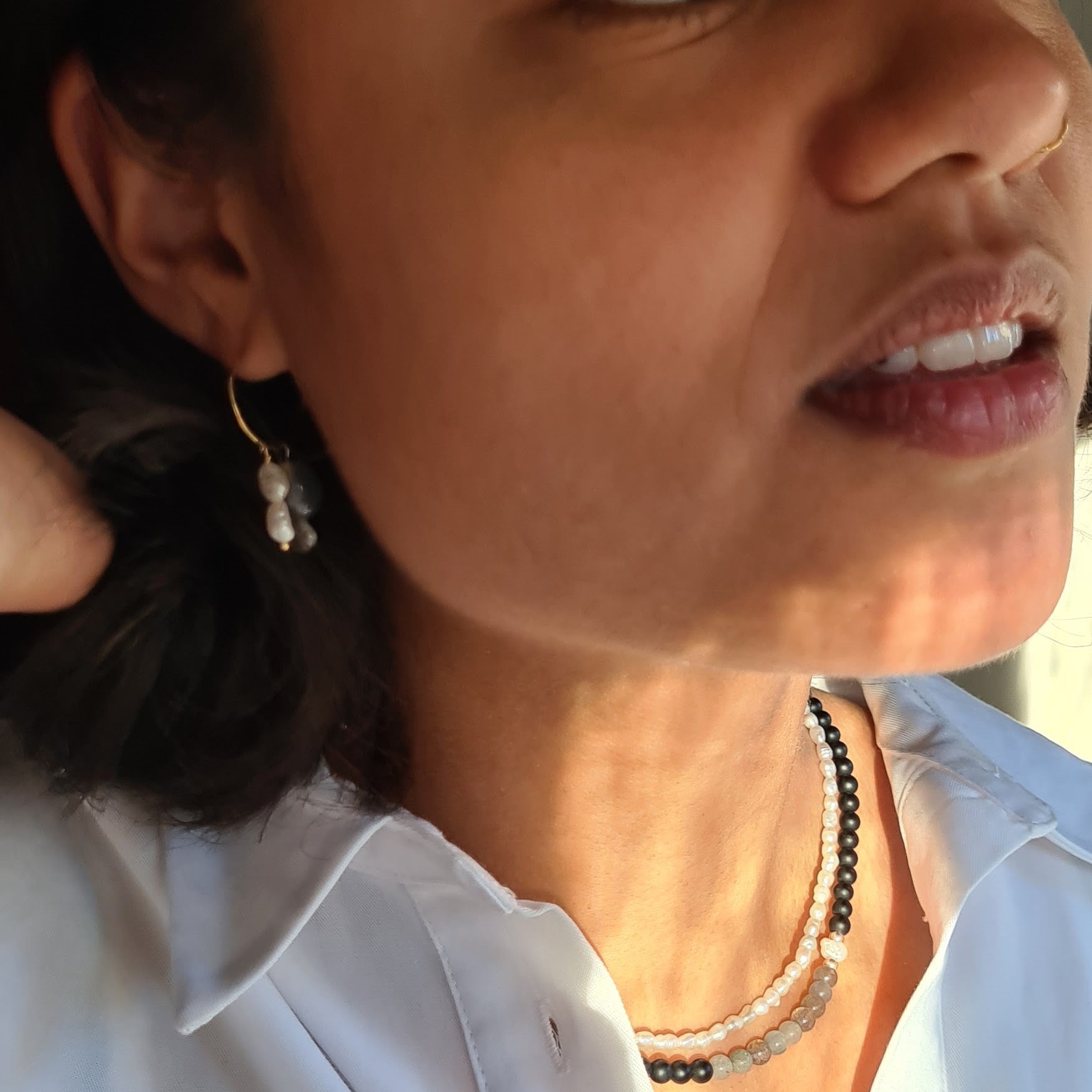 Om een beter beeld te krijgen van hoe een ketting qua lengte om jouw hals valt, kan het de moeite waard zijn om een touwtje ruim op lengte te knippen, de einden op de juiste afstand aan elkaar te knopen en het touwtje om te hangen. Of, nog beter: neem een bestaande ketting en verleng deze met een touwtje/ijzerdraadje, of kort in met een veiligheidsspeld of paperclip. Zo zie je goed tot waar de ketting reikt. Heb je jouw pastouwtje op de juiste lengte geknipt en geknoopt dan geeft deze de kern van de te bestellen ketting weer.